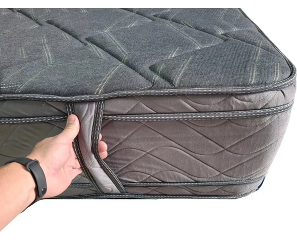 Resorte pocket, marco perimetral de acero y estabilizadores Marco perimetral espuma D24. Núcleo de espuma D24, 6 cm.